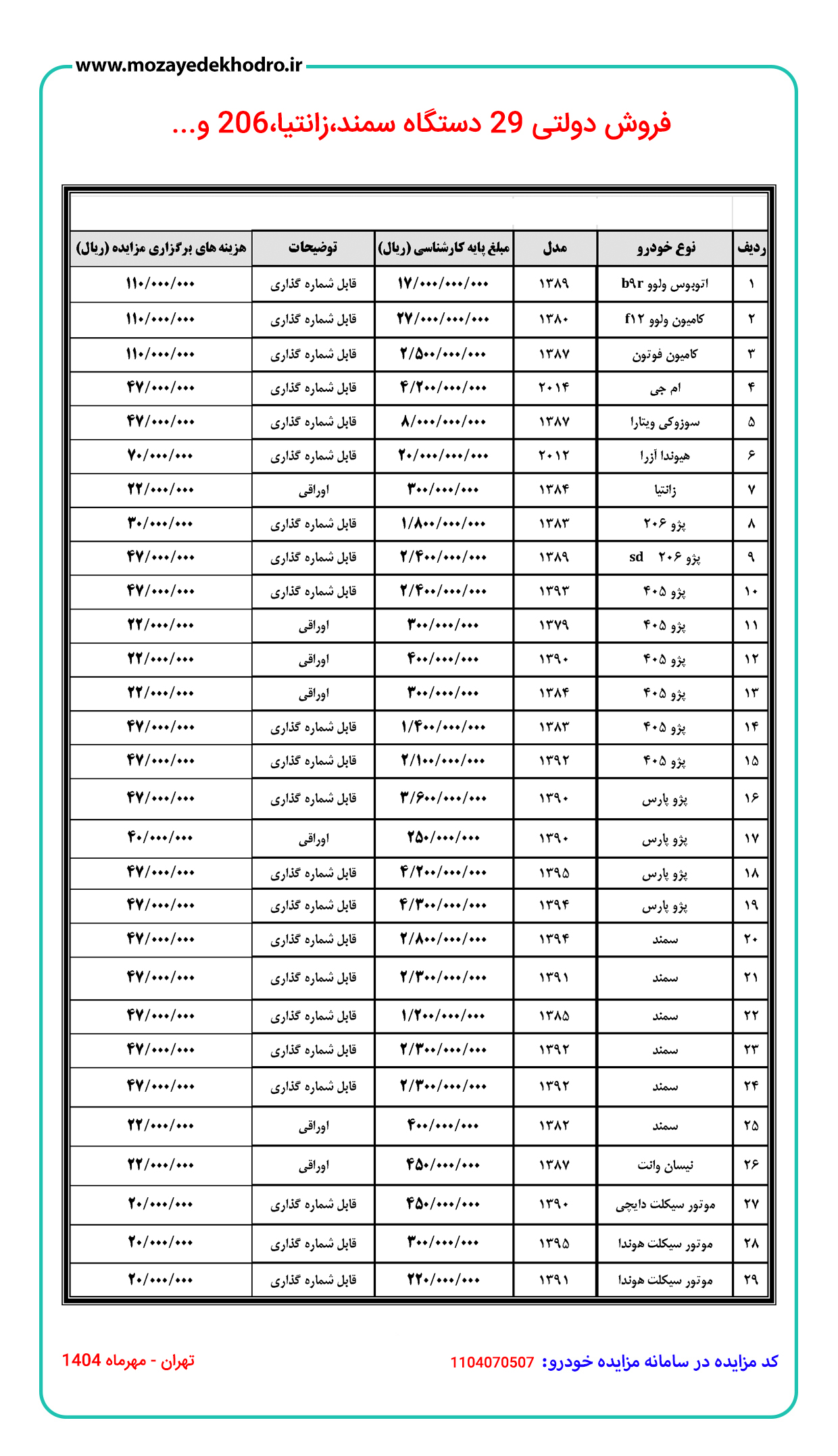 برای مشاهده لیست خودروها روی عکس روبرو کلیک کنید.
