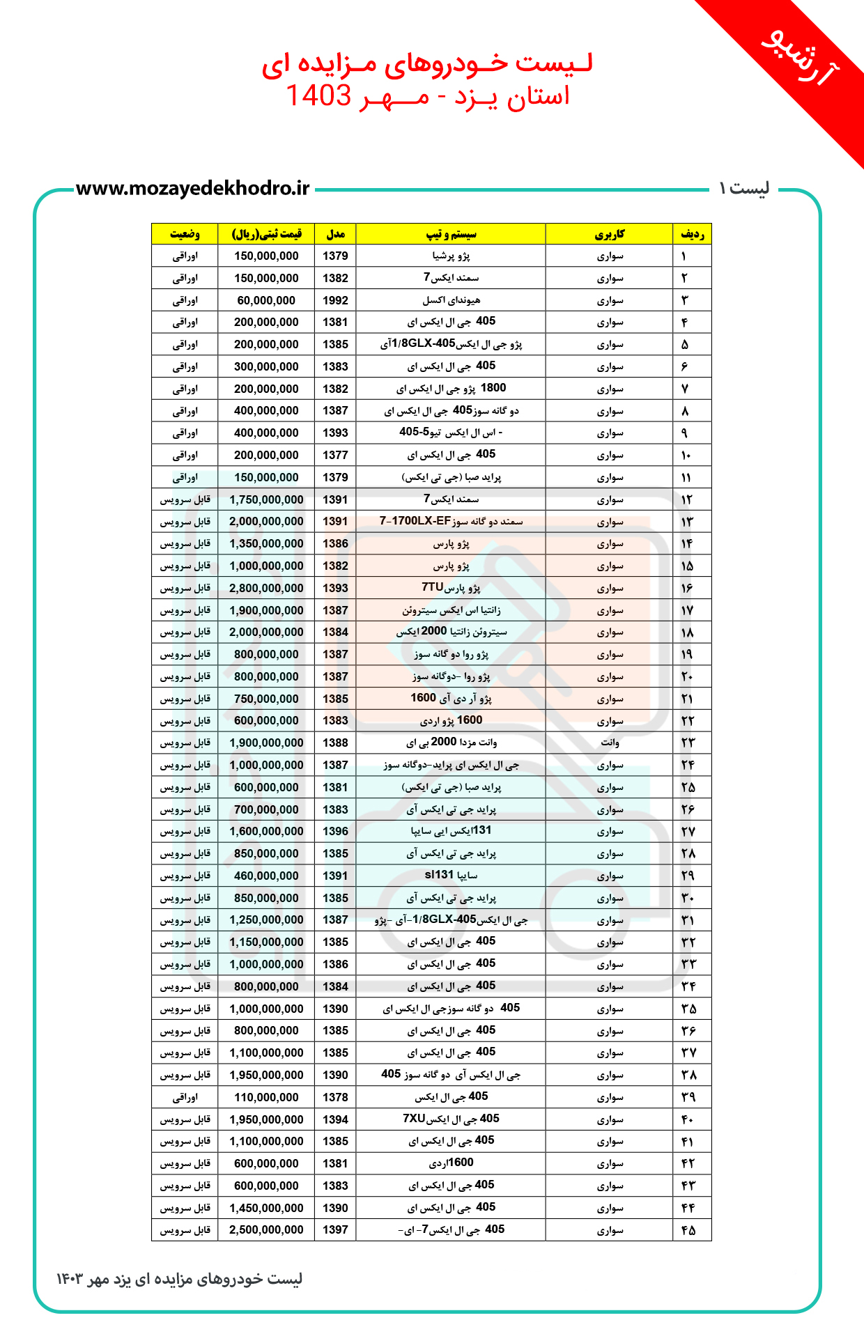 برای مشاهده لیست خودروها روی عکس روبرو کلیک کنید.