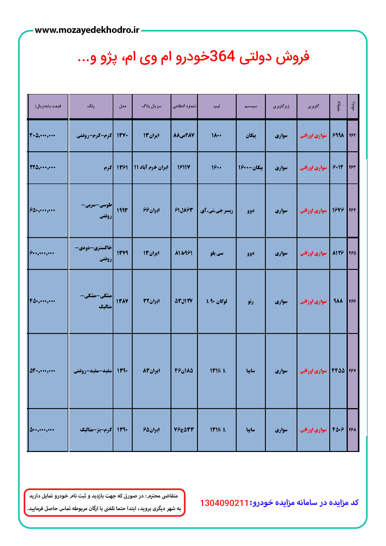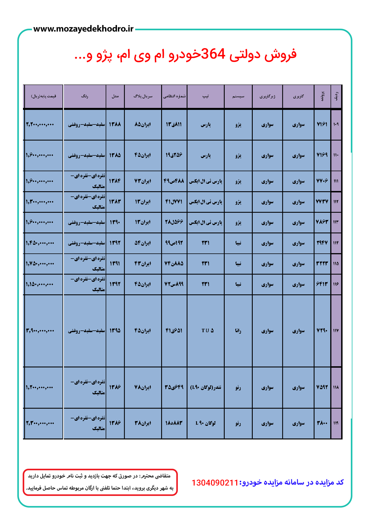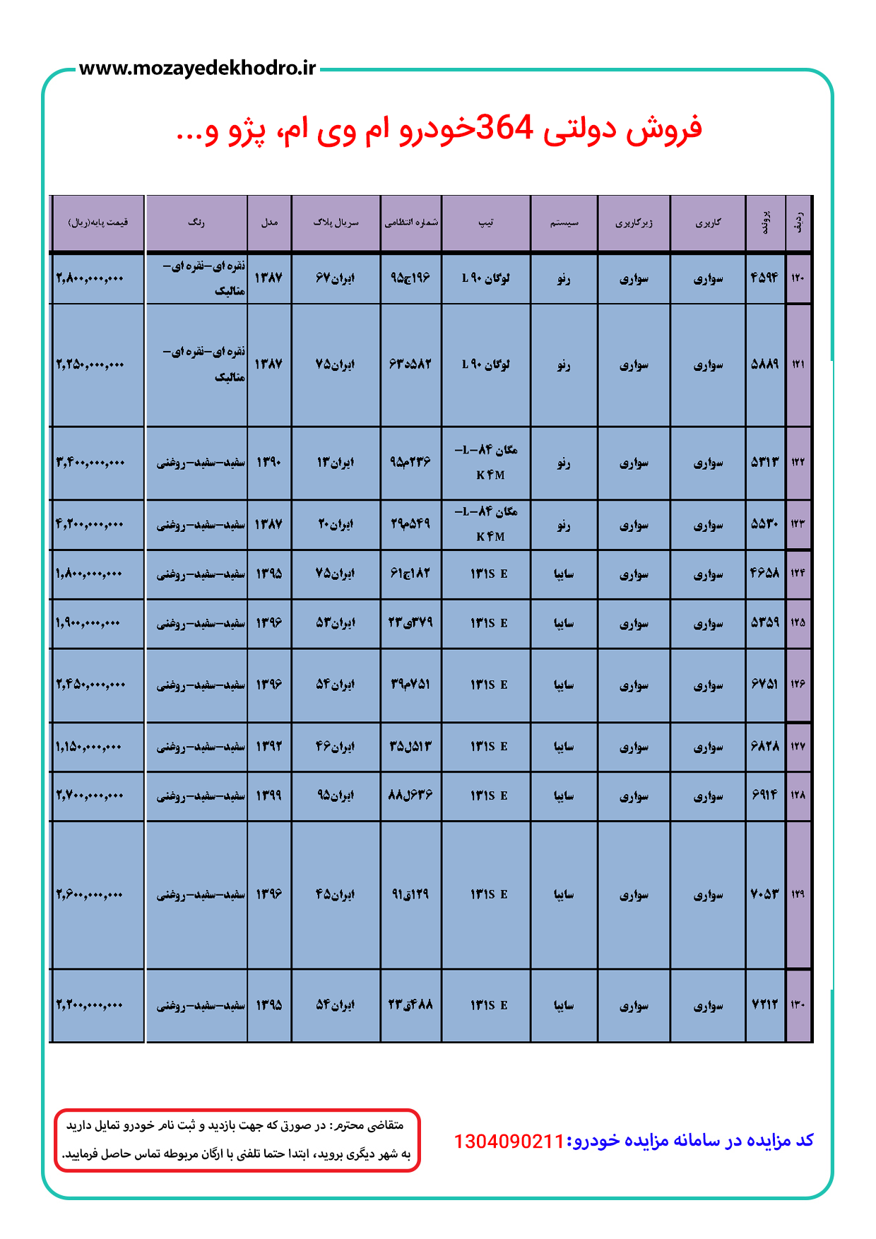 برای مشاهده لیست خودروها روی عکس روبرو کلیک کنید.
