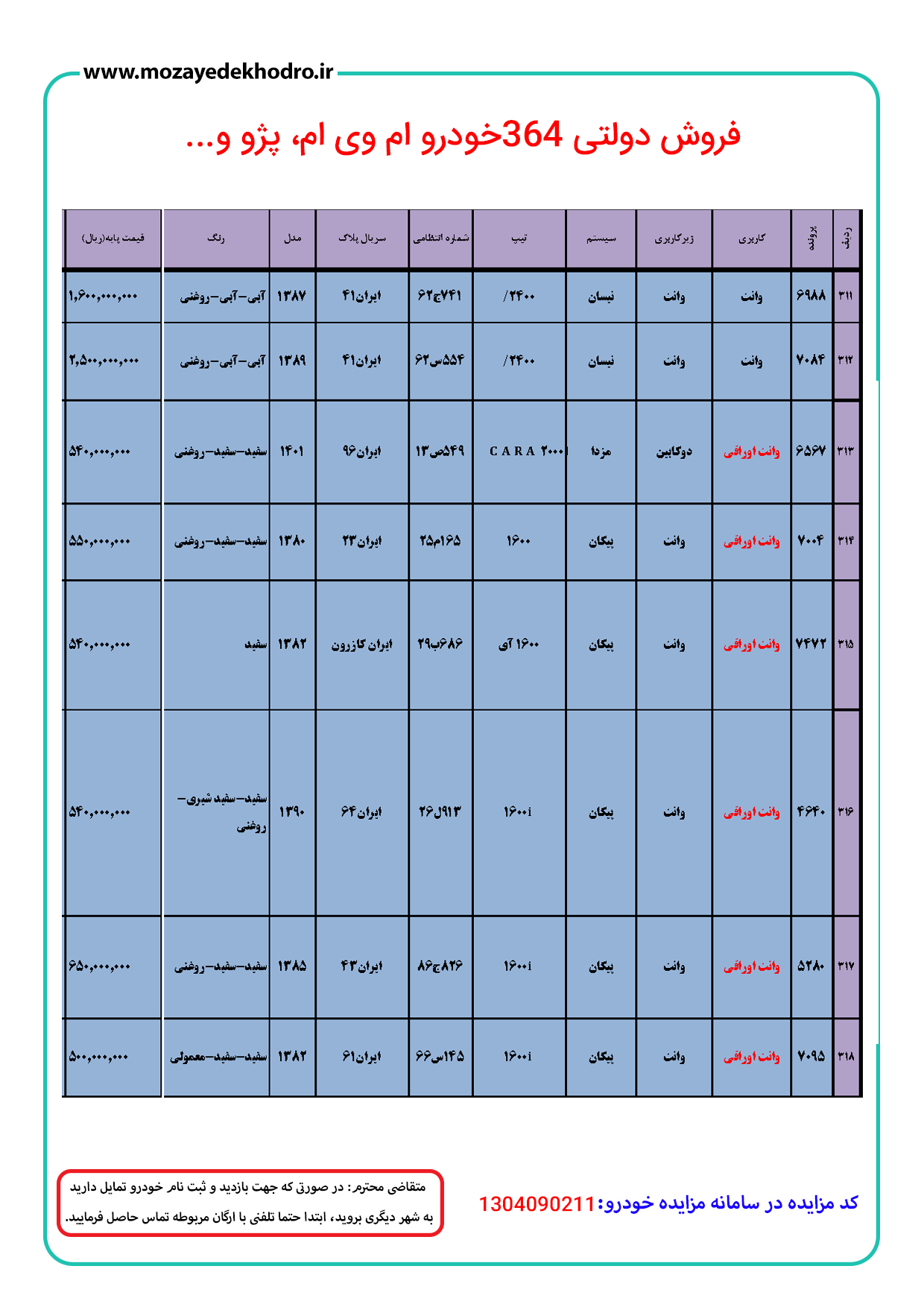 برای مشاهده لیست خودروها روی عکس روبرو کلیک کنید.